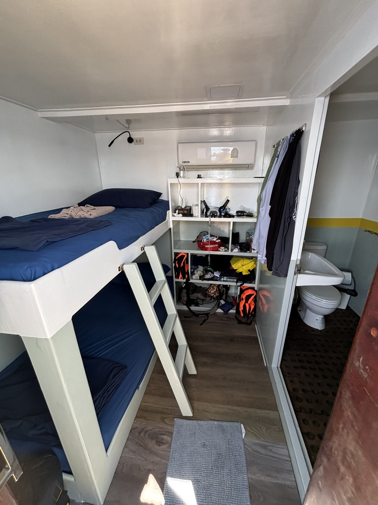 Simple safari boat with cabin beds and private bathroom in cabin. All cabins are facing outwards and thus have fresh air. The crew and the food were fantastic, the German tour guide top and also the dive spots left nothing to be desired. Again and again with pleasure!